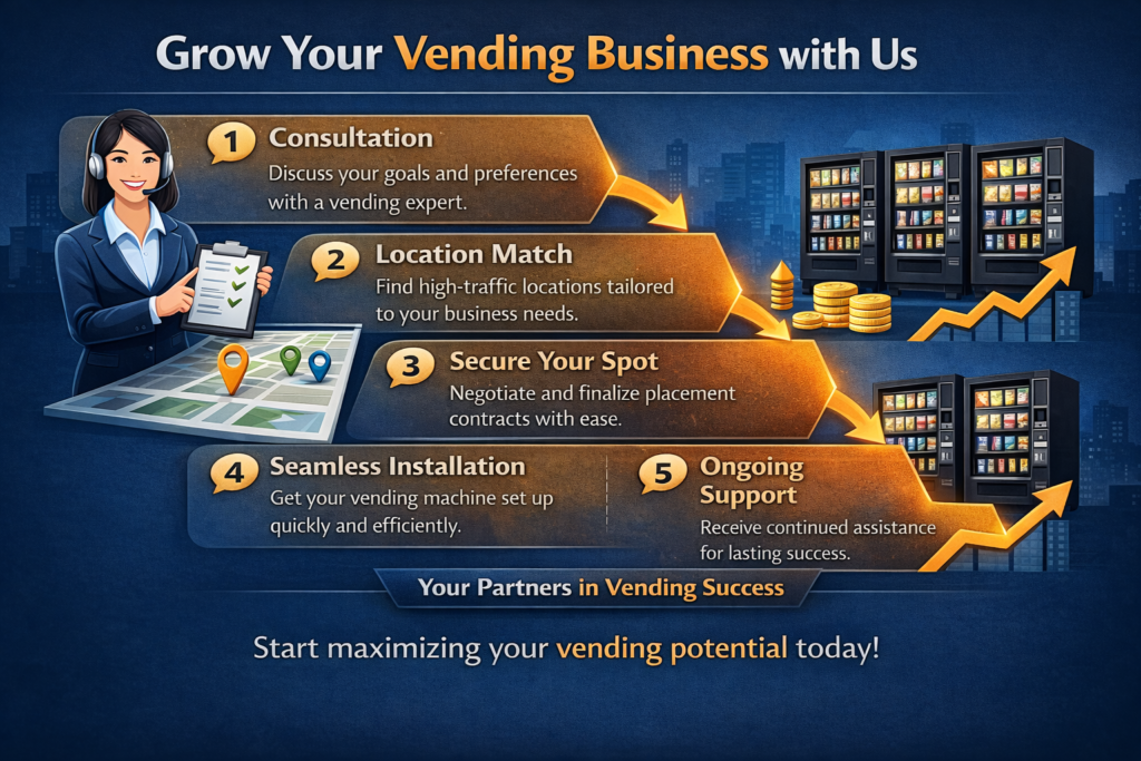 Vending Spots is a professional location acquisition partner for vending machine operators who want verified placements, structured growth, and scalable expansion.